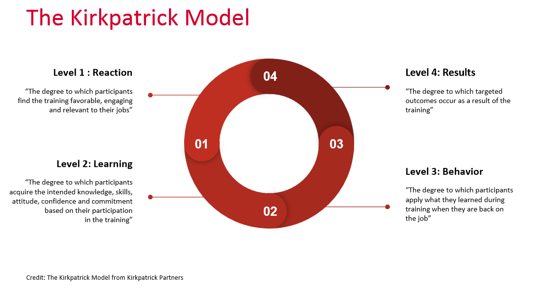 Finally, level 4 measures the impact of your learning initiative. It involves determining whether the training actually taught the right things, whether the training was applied, and whether that had the intended outcome.